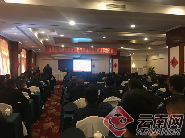 云南网讯 (记者 苏虹铭 实习生 杜鑫) 2018年12月,昆明市滇池度假区滇维保安公司接到昆明市公安局治安管理支队下发的《关于再次发动保安员积极为扫黑除恶专项斗争收集提供涉黑涉恶线索的通知》。为深入贯彻落实扫黑除恶专项斗争工作,1月23日下午,滇维保安公司举办参与扫黑除恶专项斗争推进会。