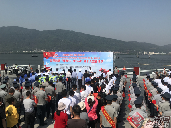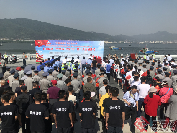 云南网讯 (记者 熊明) 4月27日,昆明首个由保安行业开展的“扫黑除恶我参与我行动暨千人签名活动”在滇池度假区海埂大坝举行。滇池国家旅游度假区各相关部门、滇维保安公司员工,以及游客们参与活动,并在主题活动宣传签名墙上签名,积极参与扫黑除恶专项斗争。