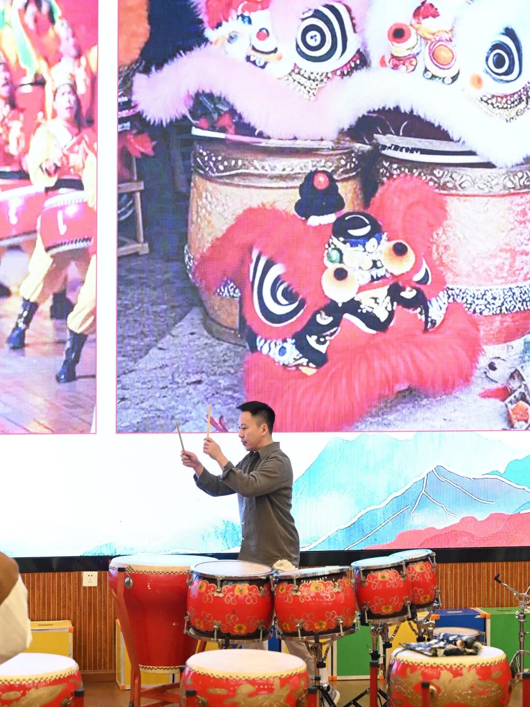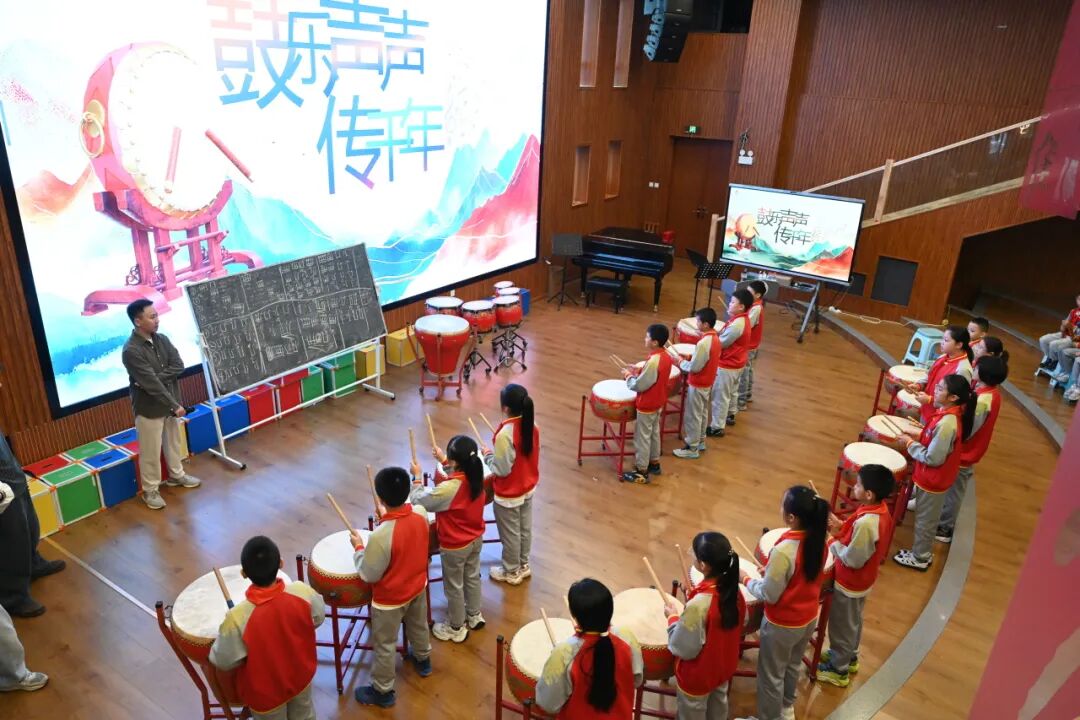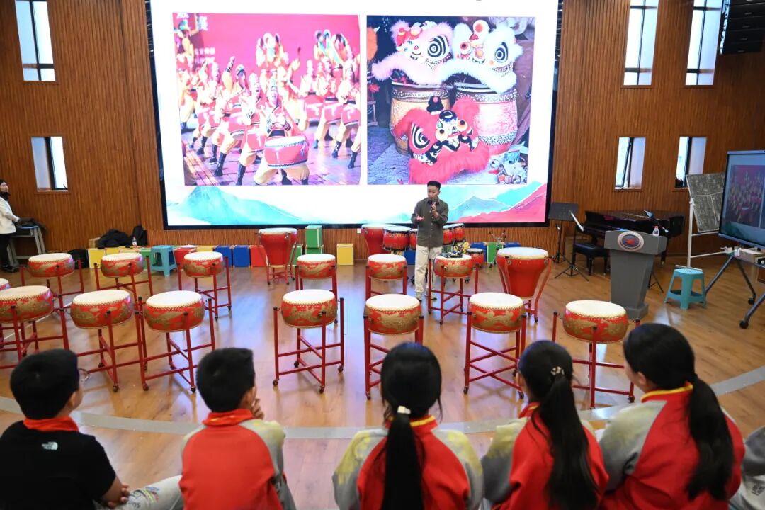在长春小学,中央音乐学院副教授、著名民族打击乐演奏家魏然以生动的示范讲解揭开民族打击乐的神秘面纱,从中国鼓的历史渊源到演奏技巧,从传统曲目的情感表达到手语节奏互动,用“沉浸式体验”让学生们直观感受鼓声中蕴含的“不屈不挠、勇往直前”的民族精神。