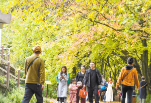 图为枫叶逐渐进入最佳观赏期,昆明植物园游人如织。记者 王俊星 摄