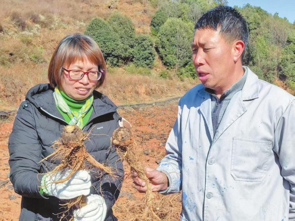 “云木香喜冷凉、湿润的气候,耐寒且喜肥,适合种植在土地肥沃、排水保水性能良好的地方。”云南农业大学教授、寻甸县农民院士科技服务站站长字淑慧介绍,联合乡红壤与风化土混合土壤疏松通气、保水不积水,为云木香等根茎类药材提供了理想的生长环境。