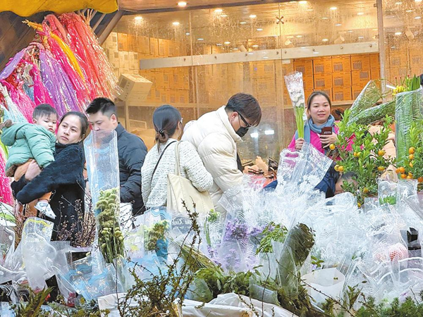 凛冬时节,越南河内西湖郡广霸花市采购年宵花的客商摩肩接踵。与往年不同的是,一抹抹红冬青格外惹眼,这抹红色,来自700公里外的中国云南。