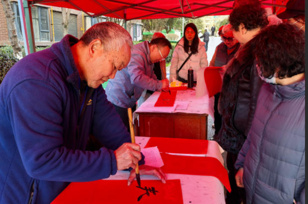 活动中,老师们现场挥毫泼墨,以笔会友。一幅幅寓意吉祥、饱含祝福的春联跃然纸上,不仅传递了浓浓的年味,更展现了优秀传统文化的独特魅力。居民们纷纷驻足观看、挑选心仪的春联,现场洋溢着欢乐祥和的气氛。此次活动累计为辖区居民送出春联、福字1000余幅,切实将新春祝福送到群众的心坎上。