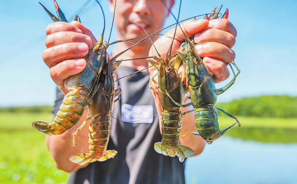 丰收的澳洲淡水龙虾。甸沙乡人民政府 供图