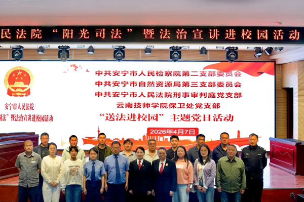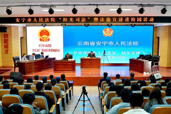 云南网讯(记者 杨樾 通讯员 周楠)为切实增强高校学生法治意识与安全防范能力,4月7日上午,安宁市人民法院刑事审判庭将真实庭审现场搬进大学校园,开展“阳光司法”活动暨法治专题讲座,为云南技师学院300余名师生送上一堂生动且深刻的法治教育课,让司法阳光照亮青春成长之路,为青年学子筑牢法治防线。