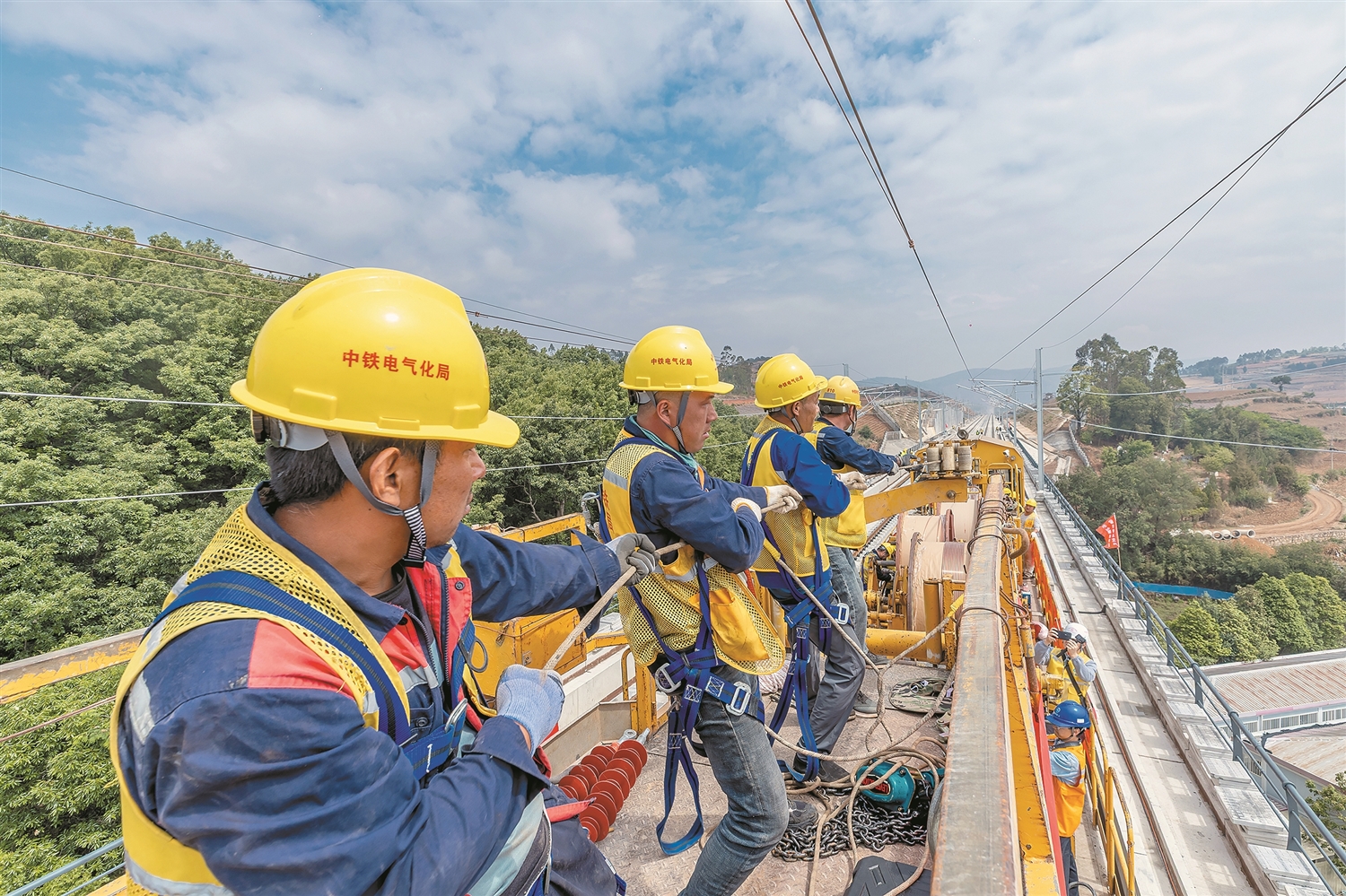 渝昆高铁云南段首条接触网导线成功架设